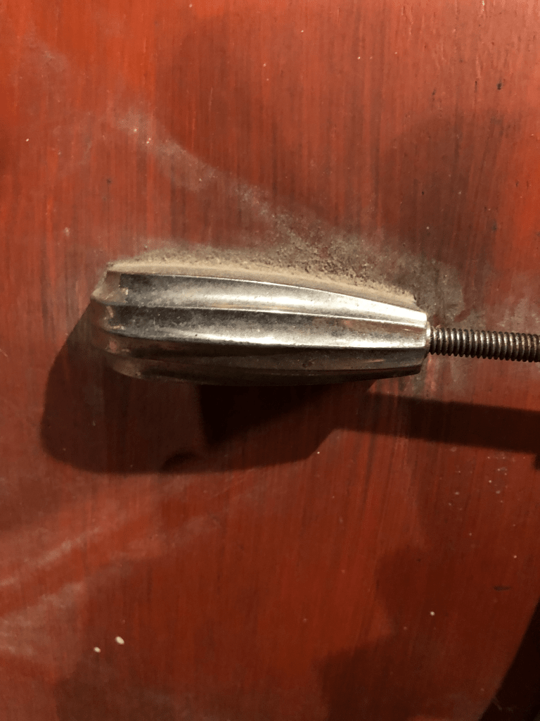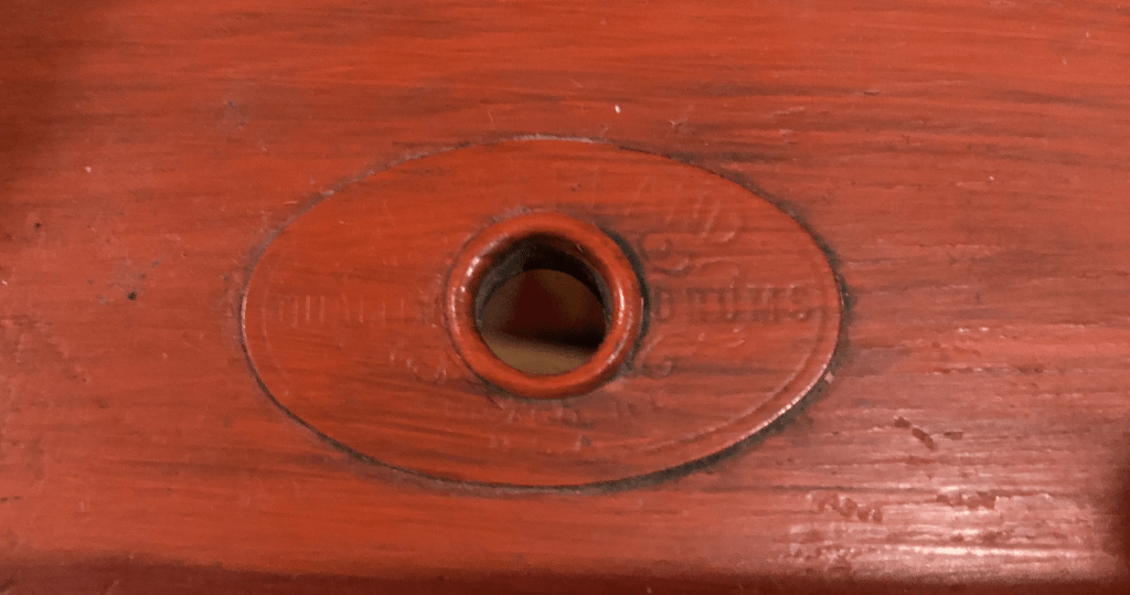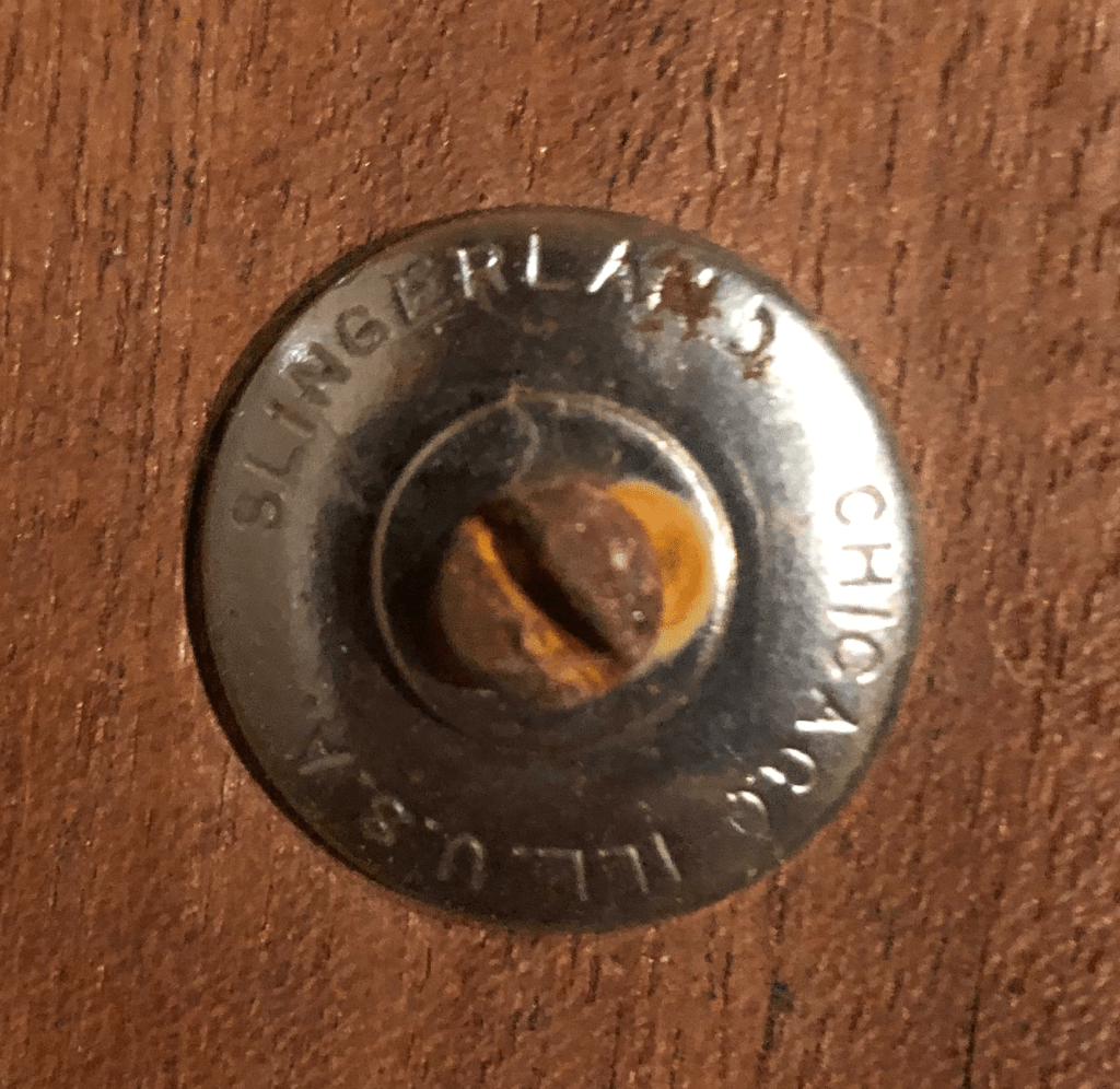 Arriving home sometime around midnight, the excitement had transformed into a more focused energy of discovery. Gathering clues as to its age and vintage, the usual identifiers (lugs, tension rods, badge design, and spectacularly, convex rounded washers that read “Slingerland, Chicago ILL. U.S.A.” situated on each lug mounting screw. What incredible craftsmanship! Few details were left out of the design and manufacture of this instrument.