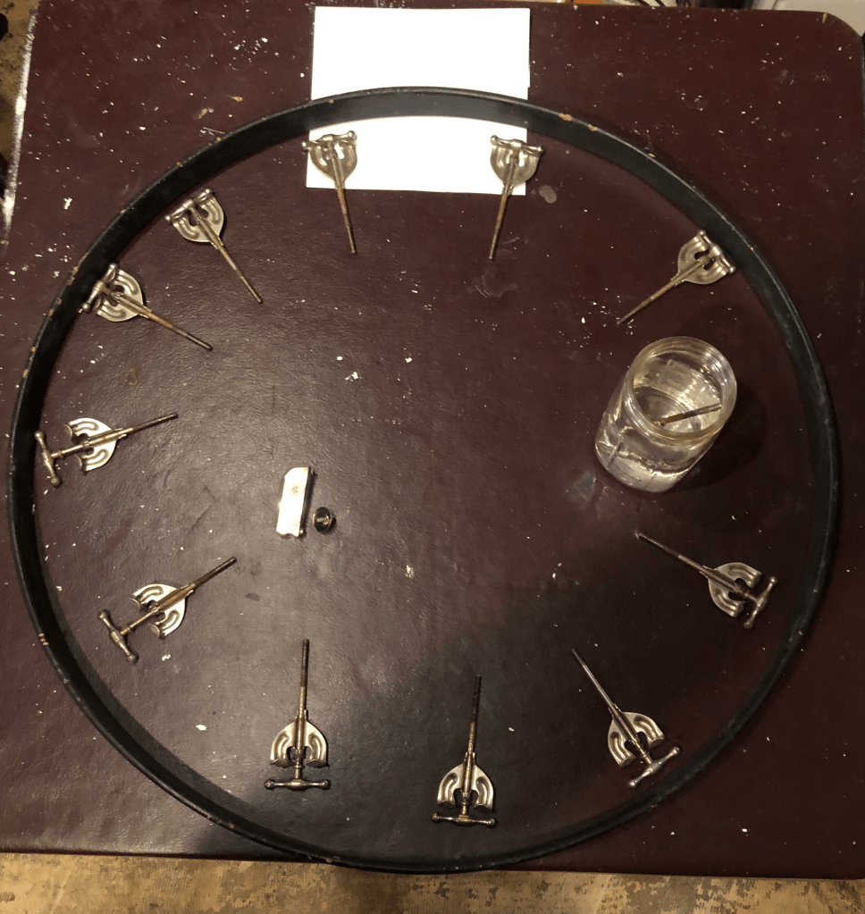 At the performer’s discretion, I availed myself with a broad selection of an appropriately diverse collection of implements. And also, peripheral types of materials that could be applied to the drum. Wood, plastic, metal. But that was basically it. All other choices were made by the coins—or in my case, polyhedral di. Why, you might ask? Well, plainly speaking four-sided di seemed more practical when selecting pararmeters from 64 possible outcomes. And while I could have sprung for the ACTUAL I Ching coins, it was not in the “cards” so to speak.